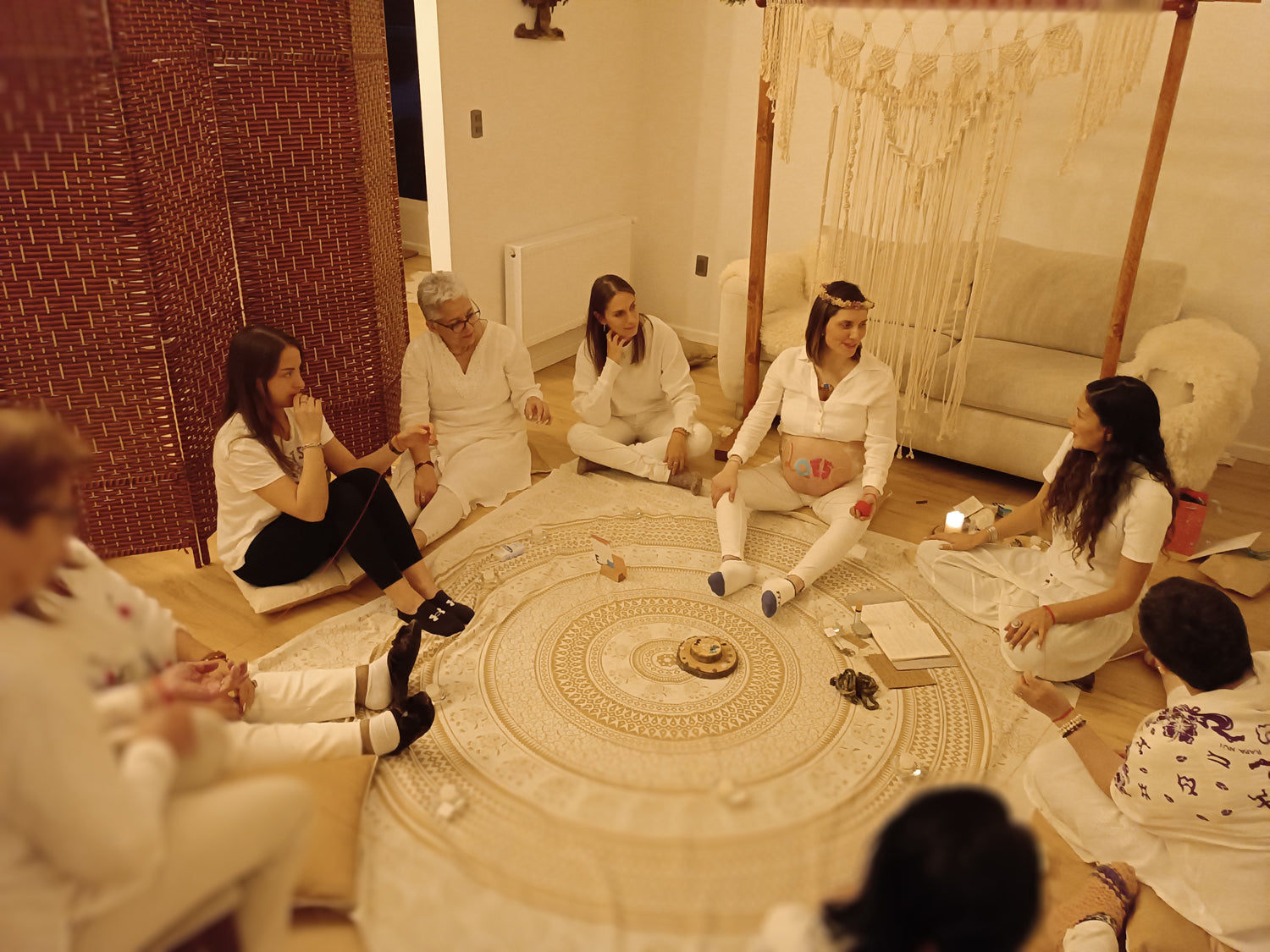 Existen momentos previos coordinados junto a la mujer gestante, en donde se puede crear un regalo grupal, un dibujo en el vientre y se realiza el altar de bendición sumado a lo que desee la mujer que celebramos.